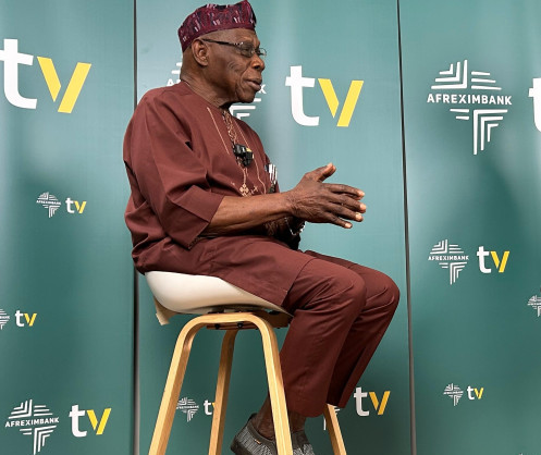 - S.E Olusegun Obasanjo, Président du Conseil consultatif de l’IATF et ancien Président de la République fédérale du Nigeria lors d’une interview dans un studio d’Afreximbank TV