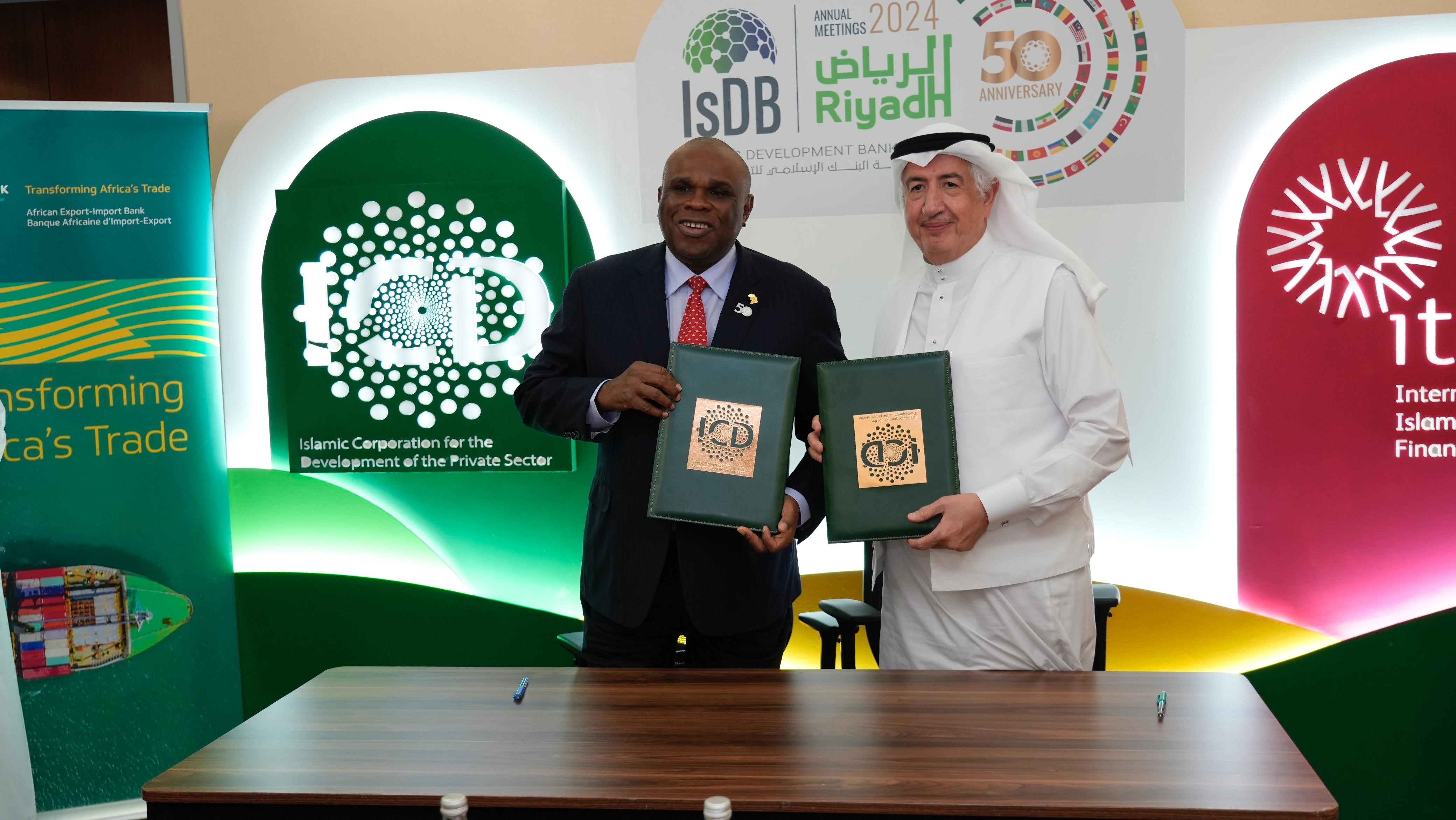 En marge des Assemblées annuelles et des célébrations du Jubilé d'or 2024 du Groupe de la Banque islamique de développement (BIsD), la Banque Africaine d'Import-Export (Afreximbank ou « la Banque ») (www.Afreximbank.com) a conclu des accords de prêt de 250 millions de dollars US avec la Société internationale islamique de financement du commerce (SIFC) et de 100 millions de dollars US avec la Société islamique pour le développement du secteur privé (SID) dans le cadre de l'appui au commerce et aux projets en Afrique.