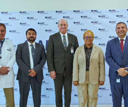 - De gauche à droite : Dr Mohamed Ibrahim, directeur clinique des services cardiovasculaires d'AMCE, M. Anshul Govila, directeur des opérations d'AMCE, M. Brian Deaver, PDG d'AMCE, Dr Aisha Umar, directrice des opérations d'AMCE et Dr Boules Gabriel, directeur clinique d'oncologie d'AMCE, lors de la conférence de presse d'AMCE marquant une étape importante dans le domaine de la chirurgie cardiaque à cœur ouvert et de la radiothérapie stéréotaxique corporelle (SBRT)
